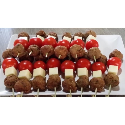 Βέργα με κεφτεδάκι, γραβιέρα και καραμελωμένο ντοματάκι