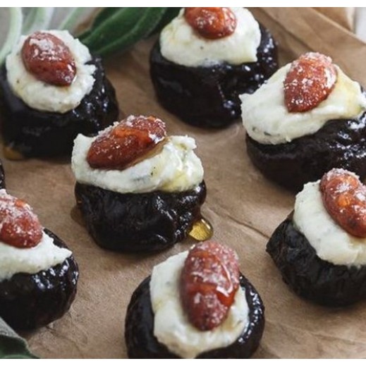 Γεμιστά δαμάσκηνα με κατσικίσιο τυρί,αμύγδαλο ψημένο και μέλι