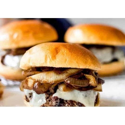 Μίνι μπέργκερ με μανιτάρια,τυρί και καραμελωμένο κρεμμύδι