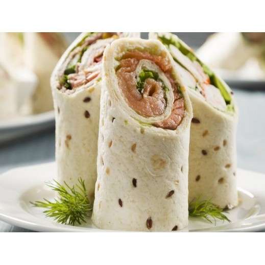 Τορτίγια καπνιστού σολομού με κρέμα τυριού, βότανα και άνηθο